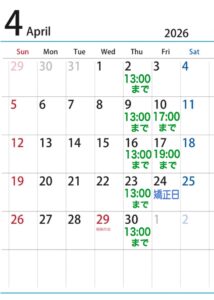 4月の診療時間のお知らせです。